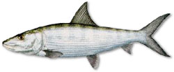 Description: Silver in color with blue or greenish back. Slender, round body, long drawn snout, overhanging and downward pointing mouth. Darker streak running down the body with faint cross bands following the lateral line and shades of black outlining the fins.