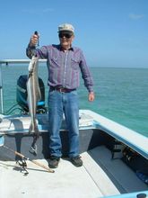 The other days we caught a couple on a buck tale jigs while searching for Tarpon in a creek just off the edge of the Flat. Then today while Permit fishing we caught one on a barracuda tube. These fish often jump and put up a heck of a fight on the flat. As do all of these fish on light tackle on the flats. The fish have nowhere to run but away from the boat. Instead of surging to deeper water they run and often jump in sheer panic to find deeper water. An added bonus to catching a Cobia is that they make for good eating. They have a firm white meat, almost steak like, however, very mild in flavor.